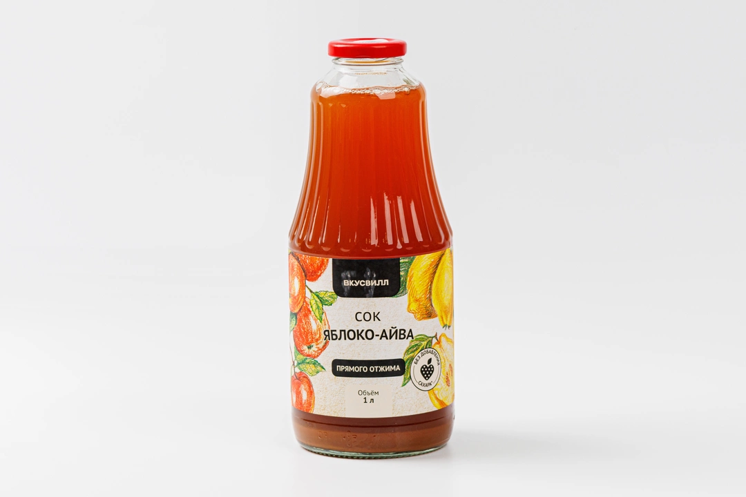Натуральный сок прямого отжима из отборных яблок и айвы — только фруктовая составляющая без добавленного сахара, консервантов и искусственных компонентов. Технология щадящей пастеризации сохраняет свежесть, вкус и полезные свойства плодов