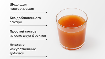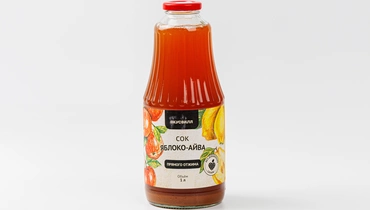 Ароматный сок с чистым составом: только 70% яблок и 30% айвы. Без добавленного сахара. Преимущественно сладкий, но не лишён и приятной кислинки. Если вкратце описывать процесс приготовления, то фрукты моют и перебирают, измельчают, подают на пресс, полученный сок фильтруют, пастеризуют щадящим методом и разливают. Можно сказать, что это практически тот же свежевыжатый сок, только в бутылочке.