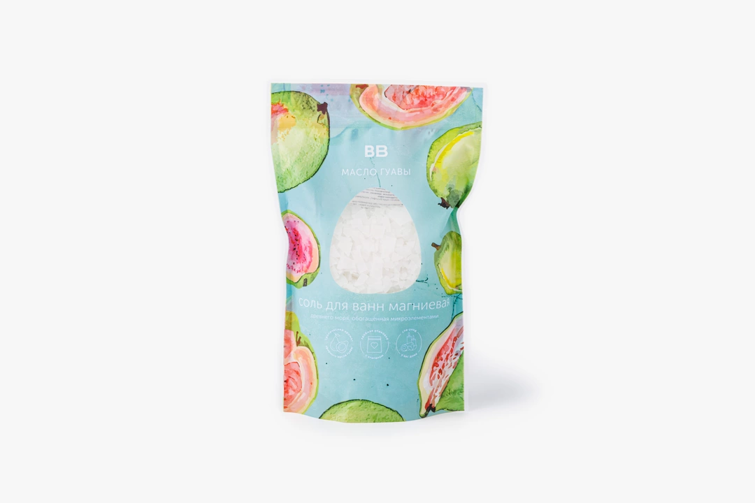 Крупная магниевая соль с эфирным маслом гуавы. Быстро растворяется в тёплой воде, оставляя в воздухе ненавязчивый фруктовый аромат. Благотворно влияет на психоэмоциональное состояние, обладает успокаивающим и расслабляющим действием. Упаковка с клапаном обеспечивает длительное хранение остатков соли, защищая кристаллы от попадания влаги. Способ применения: 200 грамм соли растворить в ванне с тёплой водой (36-38 градусов). Продолжительность процедуры: 10-20 мин. Курс: 12-15 ванн через день.