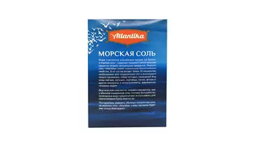 Морская соль «Атлантика» собирается в экологически чистых районах Средиземного моря, благодаря мягкой специальной обработке и очистке от примесей, сохраняет весь комплекс минеральных веществ, благотворно и целебно действующих на организм. Морская соль - это настоящий кладезь полезных веществ! В отличие от каменной соли, содержит больше ионов магния, калия, кальция, фтора, железа, селена и других элементов, так необходимых для здоровья. Помимо ощутимой пользы для организма морская соль имеет уникальный, неповторимый мягкий вкус, придает изысканный оттенок любому блюду, сохраняя при этом истинный вкус продукта. Эффект достигается благодаря более длительному, по сравнению с каменной солью, процессу растворения, что способствует равномерному просаливанию продукта. Страна производитель-Россия
