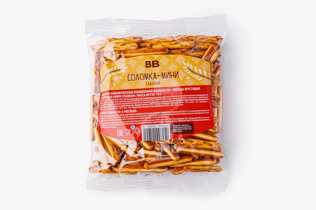 Любимая с детства хрустящая соломка в мини-формате. У неё мягкий вкус с лёгким карамельным оттенком. Соломку можно взять с собой в дорогу, на прогулку или на работу, чтобы устроить сладкую паузу в течение дня. Такое угощение особенно вкусно запивать тёплым молоком, какао или травяным чаем.