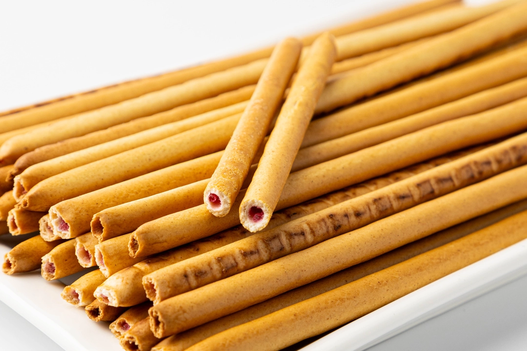 Золотистые хрустящие палочки из пшеничной муки с ароматной начинкой из яблочного пюре с добавлением сока черной смородины. Лёгкая кислинка от чёрной смородины отлично гармонирует со сладким тестом. Необычный снек, который особенно оценят дети.