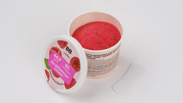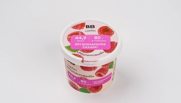 Яркий малиновый сорбет с насыщенным цветом и вкусом спелых ягод. Текстура гладкая и нежная, без ледяных крупинок. Подсластитель мальтит делает десерт сладким, при этом добавленного сахара в нём нет. Молочные компоненты тоже отсутствуют — это чисто фруктовый десерт, лёгкий и освежающий. Небольшая порция содержит всего 44,9 ккал — вариант для тех, кто следит за калориями, но не готов отказываться от маленьких сладких удовольствий. Удобная порционная упаковка с ложечкой внутри — можно взять с собой или съесть сразу, если хочется чего-то прохладного и ягодного.