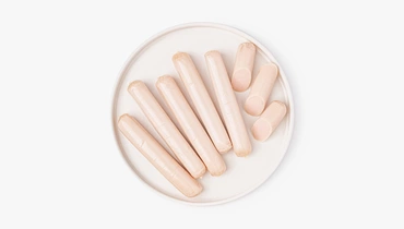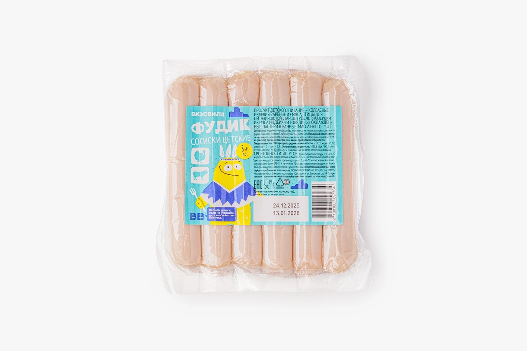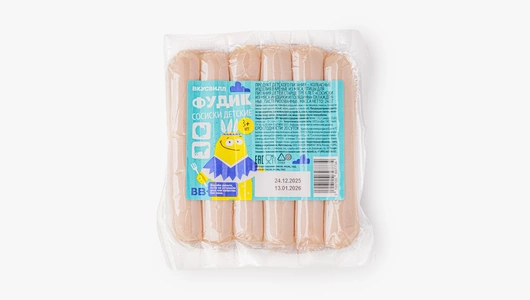 Рецептура сосисок разработана специально для питания детей от 3-х лет. Продукт не содержит молока и яиц. Сосиски изготавливаются из свежей говядины и филе грудки индейки с добавлением небольшого количества соли, душистого перца и мускатного ореха. Оболочка состоит из 100%-й целлюлозы, поэтому перед употреблением продукта её необходимо удалить.