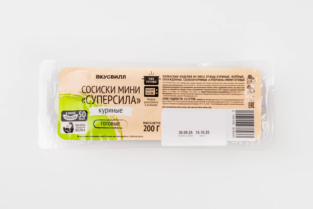 Варёные и охлаждённые куриные сосиски с лёгким ароматом специй. Для особенной мягкости к нежному куриному мясу мы добавили молоко. Это полностью готовый к употреблению продукт с высоким содержанием белка. В каждой мини-сосиске содержится всего 50 ккал. Это удобный вариант для быстрого перекуса или дополнения к гарниру. Сочные сосиски хорошо сочетаются с овощным салатом, цельнозерновыми хлебцами, картофельным пюре и крупами.