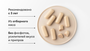 Проверено: без усилителей вкуса. Наши сосиски приготовлены из отборного мяса говядины, свинины и курицы.