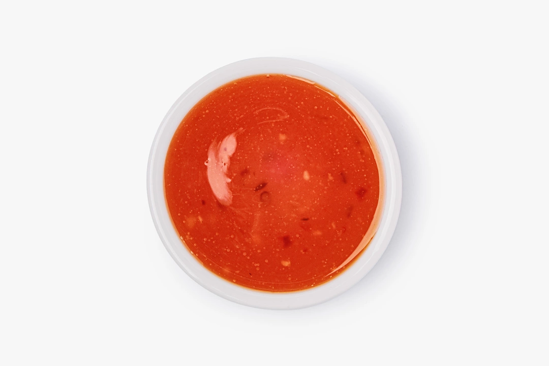 Сладко-острый соус с ярким вкусом красной паприки и чили, дополненный чесночной нотой. Текстура густая и однородная, соус легко распределяется и хорошо держится на продуктах. Сладость здесь мягкая и не перебивает остроту — она лишь подчёркивает пряный характер перца. Подходит к курице, мясу на гриле, овощам, рису и лапше, а также в качестве соуса для обмакивания.
