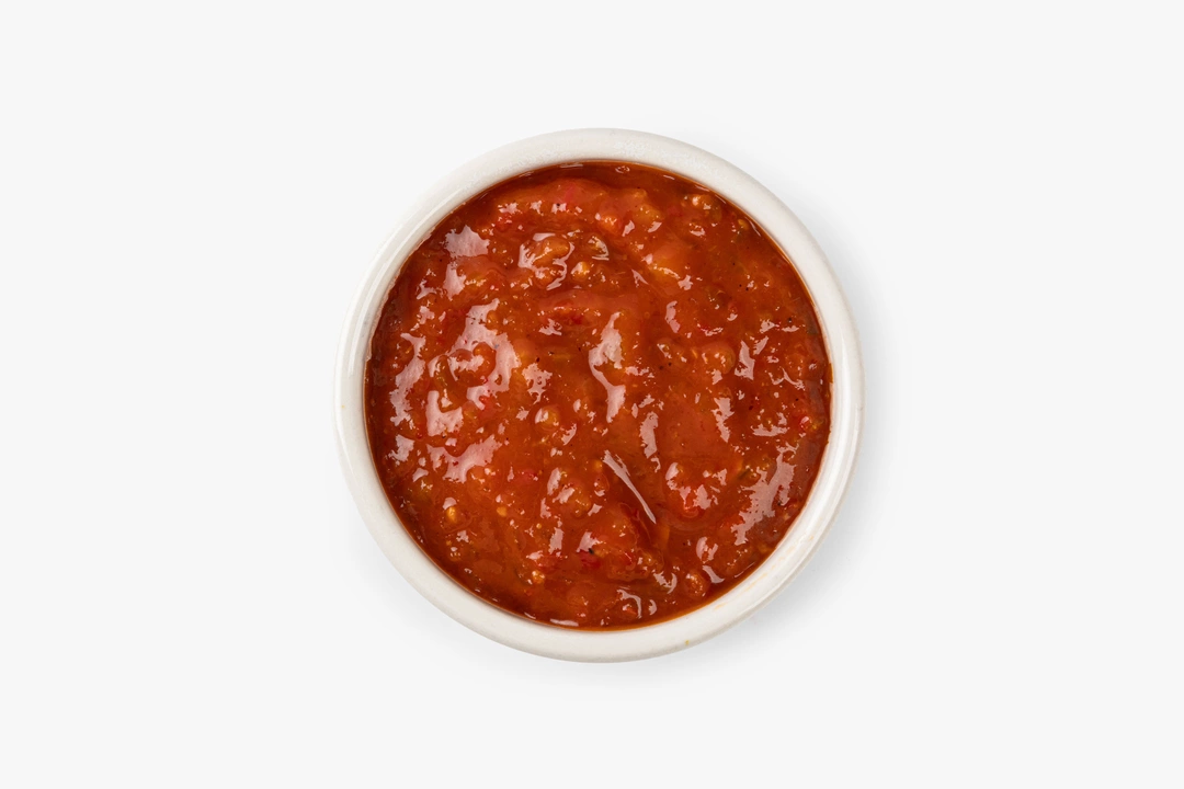 Соус на основе красной сливы и сладкого перца с добавлением томата, чеснока и пряностей. Яблочный уксус придаёт вкусу лёгкую свежесть, а смесь перцев и хмели-сунели делает аромат более глубоким. Подходит к мясу, птице и овощным блюдам.