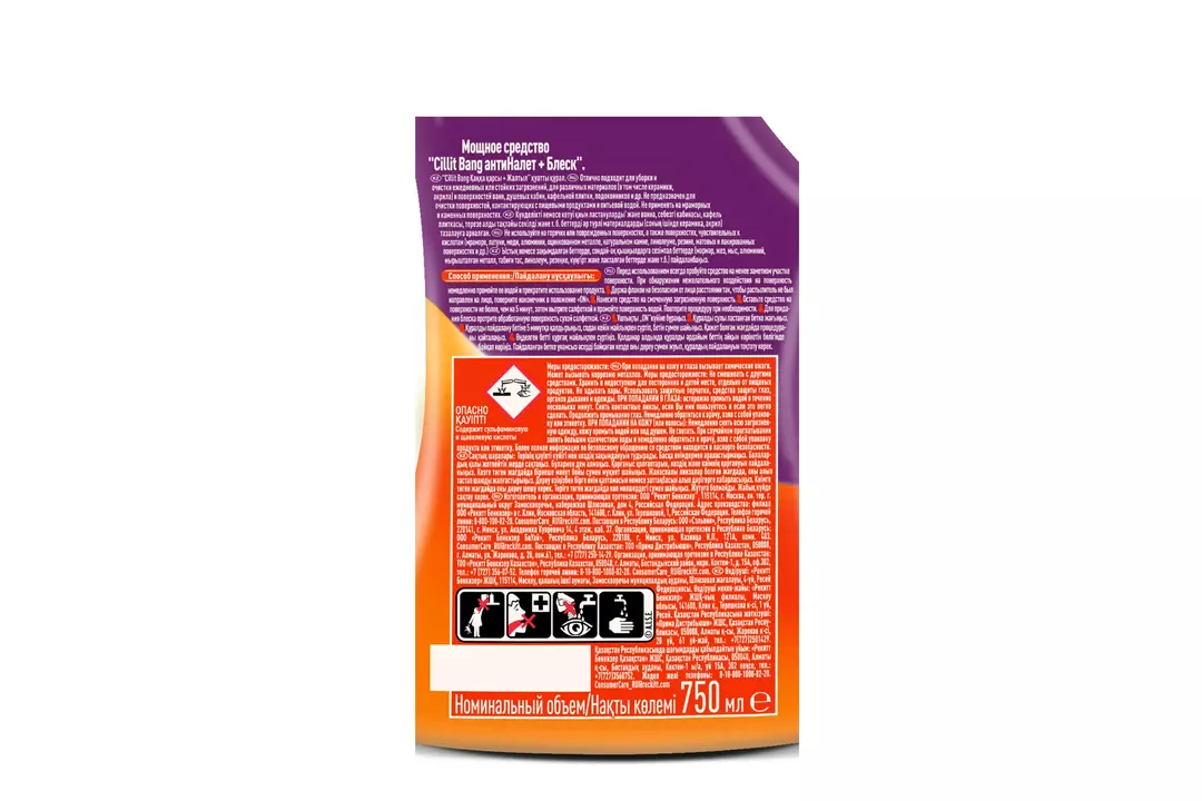 Моющее средство для уборки ванны и туалета CIllit Bang Антиналет+блеск. Эффективно против ежедневных и стойких загрязнений. Удаляет известковый и мыльный налет, ржавчину, возвращая блеск вашим поверхностям. Идеально подходит для чистки хромированных, керамических, пластиковых, стеклянных поверхностей, а также поверхностей из нержавеющей стали и акриловых ванн. Эргономичный флакон оснащен высоконадежным курковым распылителем, позволяющим легко наносить раствор на загрязненную поверхность. Страна-производитель Россия