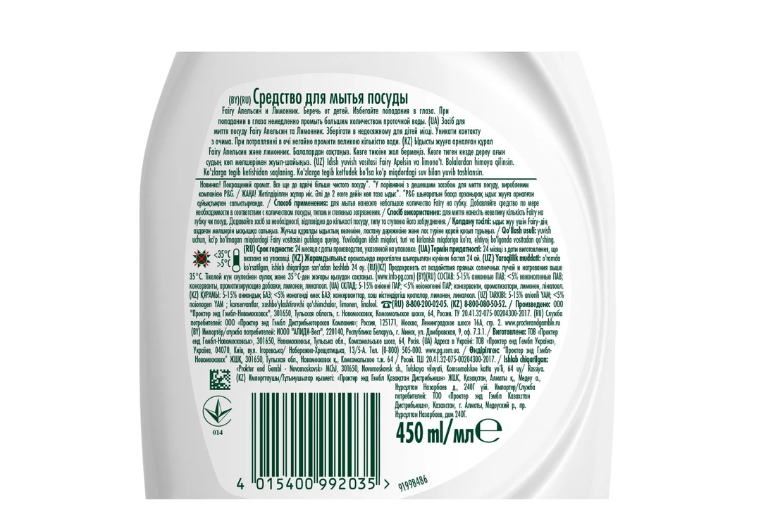 Средство для мытья посуды Fairy Апельсин и лимонник 450 мл / Супермаркет
