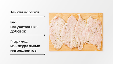 Стейки из грудки в белом маринаде с сушёным чесноком, базиликом и лимонной цедрой. Специи мягко звучат во вкусе, не затмевая нежность индейки. А благодаря тонкой нарезке, мясо готовится особенно быстро. Можно обжарить по 2–3 минуты с каждой стороны или запечь в духовке.