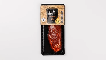 Стейк из мраморной говядины. Мачете вырезают из мышцы, расположенной у рёбер. Эта мышца практически не задействована в движении животного, поэтому стейк особенно мягкий и сочный. А ароматный маринад делает его вкус ещё выразительнее. Способ приготовления: Поместить на раскалённую сковороду. Обжарить на среднем огне с каждой стороны: по 2–3 минуты для рекомендуемой прожарки Medium. Готовый стейк завернуть в фольгу на 1–2 минуты: так он будет сочнее — и после этого можно подавать на стол. Если Мачете готовится на мангале, важно периодически переворачивать стейк, чтобы уберечь его от подгорания.