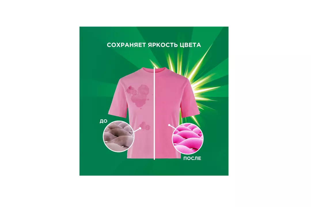 Стиральный порошок Ariel Color Автомат для стиральной машины предназначен для стирки цветного и белого белья. Благодаря технологии Аквапудра, порошок для стирки Ariel Color растворяется, едва коснувшись воды, и моментально активируется: глубоко проникает в структуру волокон и удаляет сложные пятна, не давая загрязнениям въедаться. Ariel Color удаляет даже невидимые загрязнения, устраняя неприятные запахи и предотвращая изменение цвета ткани, в том числе на воротничках и манжетах. Преимущества Ariel Color: • Безупречное удаление пятен с первой стирки даже при 30°C; • Порошок быстро растворяется, не оставляя следов на одежде; • Сохраняет яркость цветных вещей; • Помогает справиться с застарелыми пятнами; • Не дает грязи и пятнам въедаться в структуру волокон; • 0% фосфатов и хлорного отбеливателя. Россия
