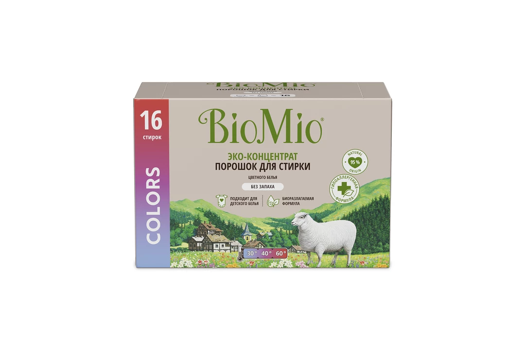 Экологичный концентрированный порошок BIOMIO® для стирки цветного и белого белья с ионами серебра благодаря биотехнологиям HOMEBIOME® удаляет невидимые загрязнения, сохраняет цвет и форму тканей. Гипоаллергенная формула. Экономичный расход - достаточно одной ложки на стирку в мягкой вод. Страна производитель-Россия