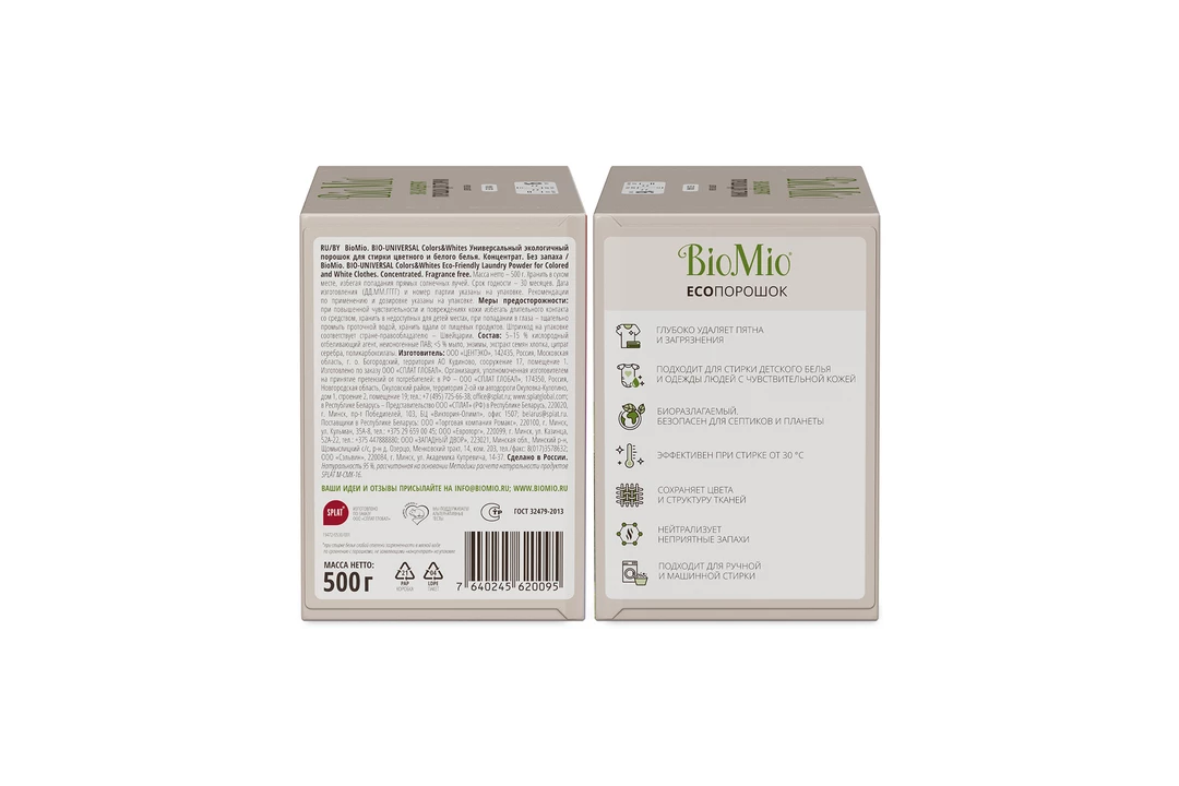 Стиральный порошок BioMio Bio-Universal для цветного и белого экологичный без запаха 500 г / Супермаркет