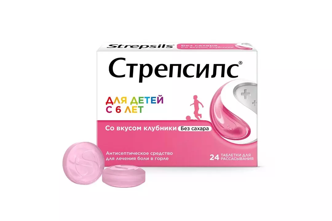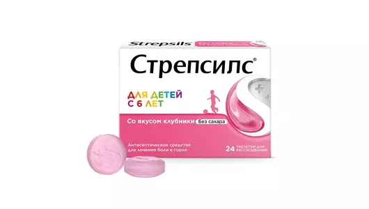 Стрепсилс с клубникой таблетки для рассасывания вкус 24 шт.