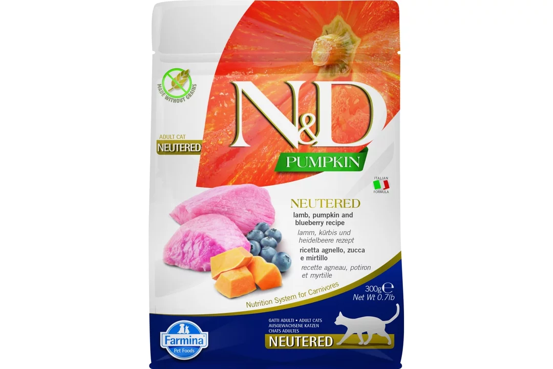 Сухой корм FARMINA 300гр для кастрированных котов и стерилизованных кошек Ягненок и Черника с Тыквой Беззерновой / Супермаркет