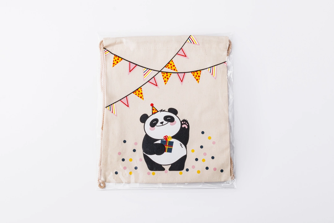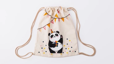Универсальная сумка-рюкзачок на шнуровке с изображением милой панды. Изделие выполнено из плотной саржевой ткани, стойкой к износу, которую к тому же легко стирать. Очаровательный дизайн покорит ребёнка с первого взгляда, а благодаря оптимальному размеру сумка хорошо подойдёт для прогулок, поездок и школы. Размер 25 см*30 см*1 см