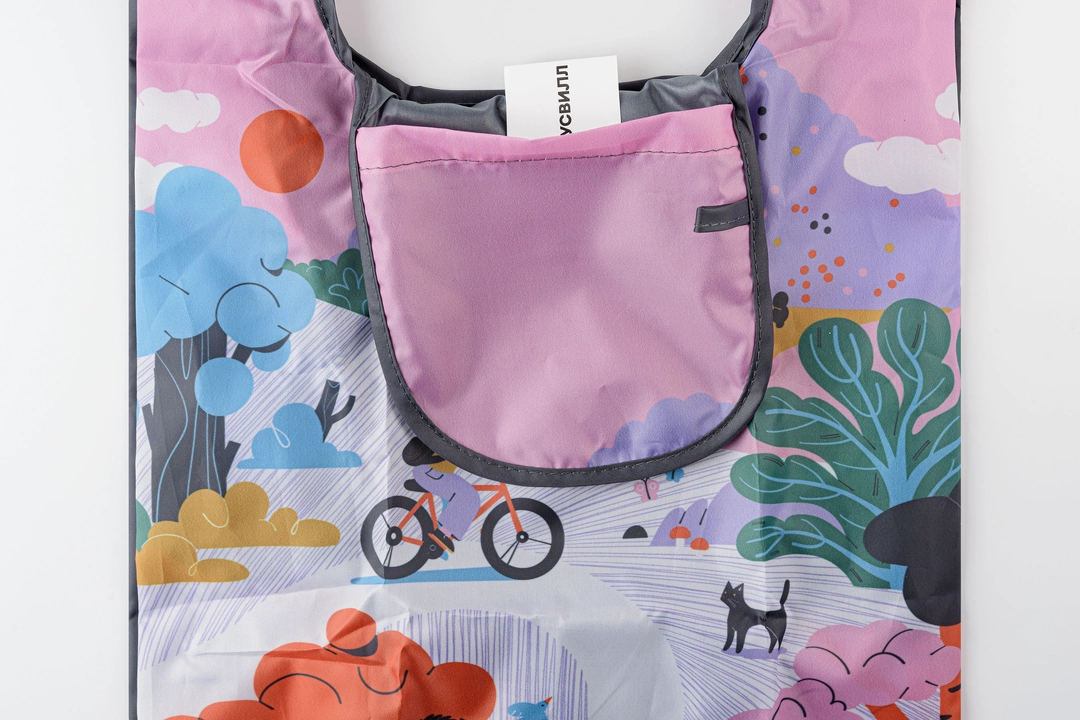 Практичная сумка с принтом станет вашим верным спутником для ежедневных покупок. Она достаточно компактная и изготовлена из прочного полиэстера. Это сумка, с которой вы можете экономить: просто отсканируйте QR-код на бирке перед оплатой и получите 6 бонусов на карту лояльности с каждой покупкой, но не более 2 раз в день. После использования сумку можно сложить и убрать в рюкзак или борсетку.