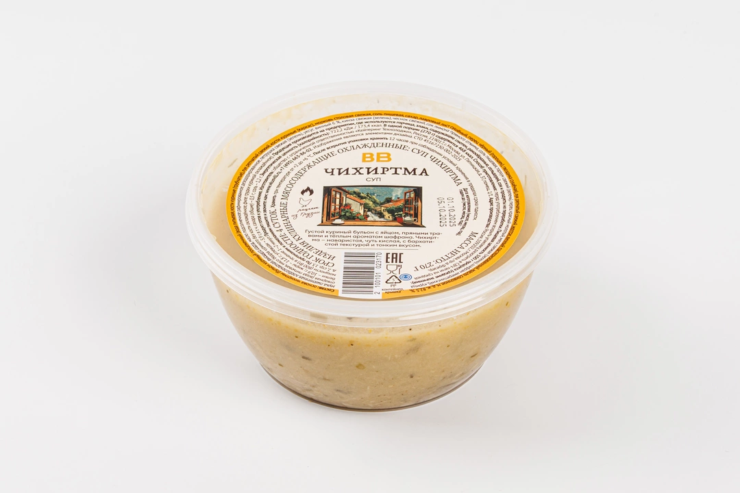Ароматный грузинский суп, в котором насыщенный куриный бульон на костях с гвоздикой и лавровым листом сочетается с нежными кусочками бедра и грудки. Вкус держится на тонком балансе лимонной кислинки, лёгкой остроты чеснока и тёплых травяных нот. Заправка из желтка, сливочного масла и муки придаёт супу бархатистую текстуру, а винный уксус и лимонный сок — лёгкую кислинку. Свежая зелень петрушки, кинзы, тархуна и мяты раскрывается при прогревании, а имеретинский шафран добавляет золотистый оттенок и тонкий аромат. Чихиртма получается густой, бархатистой и согревающей. Шлейф пряностей сразу переносит в атмосферу кавказской кухни, где простота ингредиентов соединяется с ярким национальным колоритом, превращаясь в кулинарную традицию.