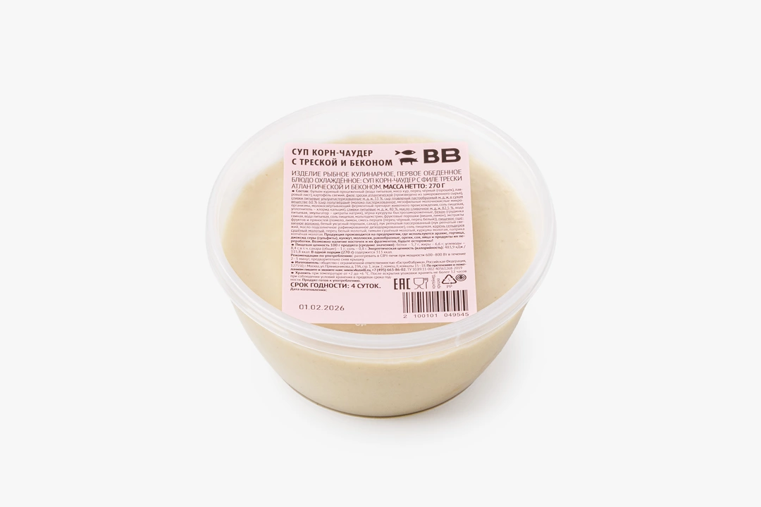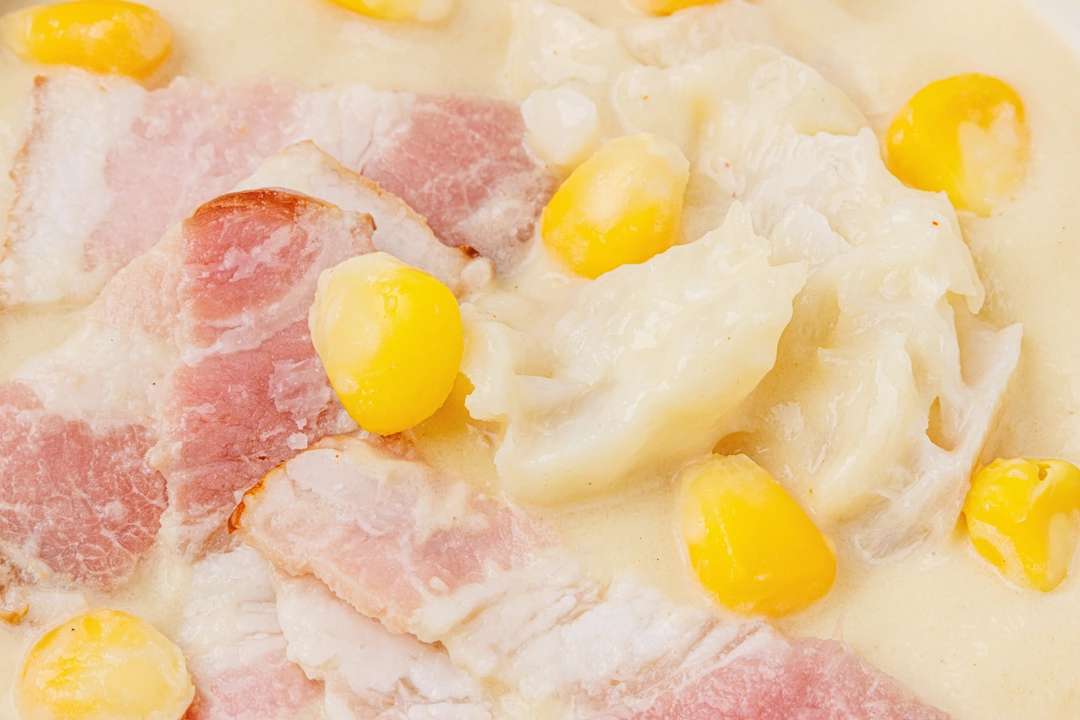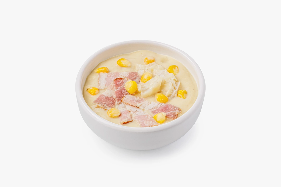 Суп корн-чаудер с треской и беконом