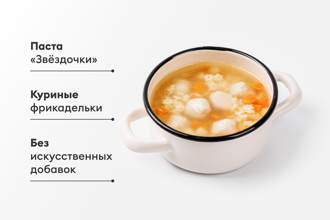 Лёгкий суп с фрикадельками по традиционному рецепту. Состав проверен: нет усилителей вкуса, консервантов и антибиотиков