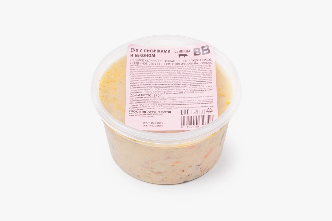 Суп с лисичками и беконом