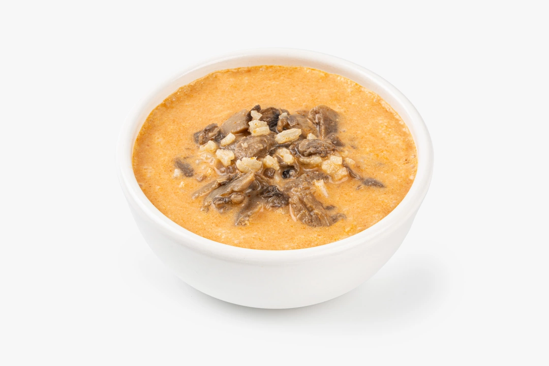 Ароматный том-ям на рисово-кокосовой основе — это вариация знаменитого тайского супа из растительных ингредиентов. Мы добавили в него свежие шампиньоны для сытности и традиционные специи и соус унаги для придания характерной глубины. Вкус получается чуть сладковатым, с деликатным пряным оттенком. Подавайте суп подогретым, по желанию украсив дольками лайма. Он обязательно понравится любителям кулинарных экспериментов, ценителям лёгких блюд азиатской кухни и тем, кто не употребляет пищу животного происхождения.