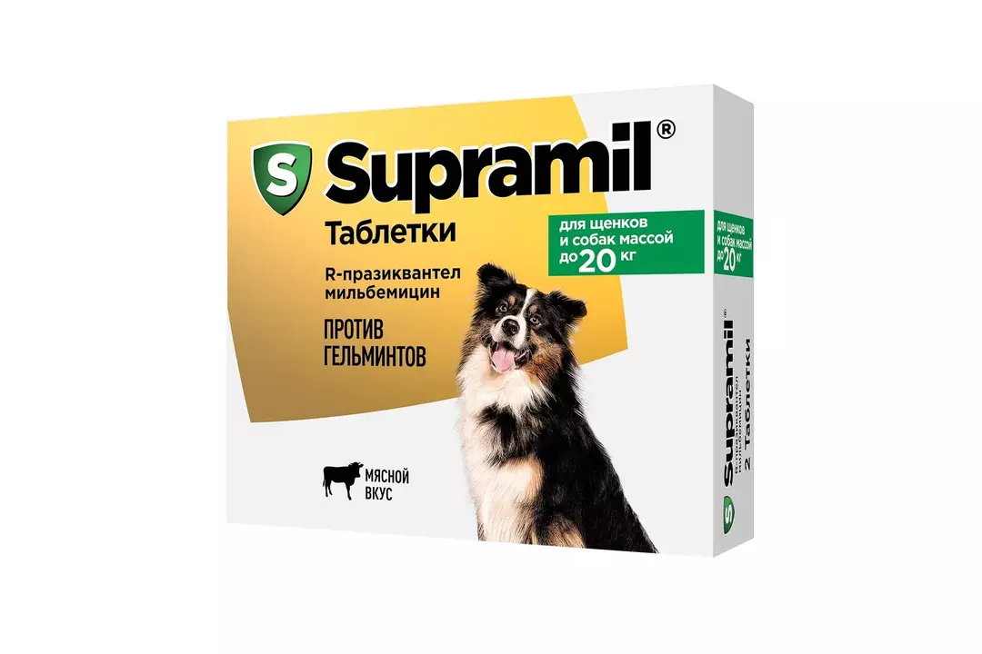 Супрамил антигельминтик для щенков и собак массой до 20кг 2таб (Астрафарм)