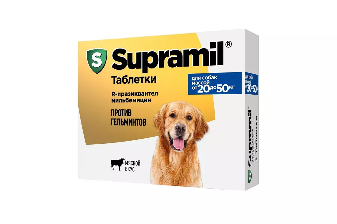 Супрамил антигельминтик для собак массой от 20 до 50кг 2таб (Астрафарм) купить с бесплатной доставкой на дом всего за 2 часа из ВкусВилла. Также можно оформить онлайн-заявку на самовывоз и забрать собранный заказ через 30 минут. Цены, отзывы о товарах от наших покупателей, действующие акции на официальном сайте ВкусВилл.