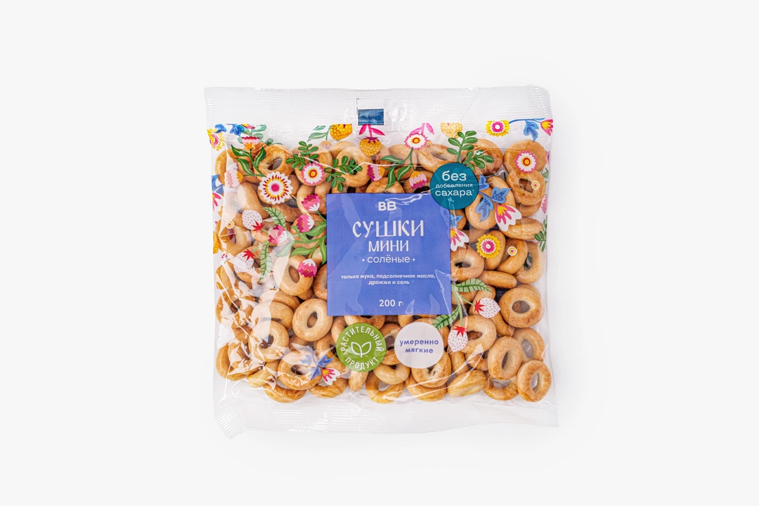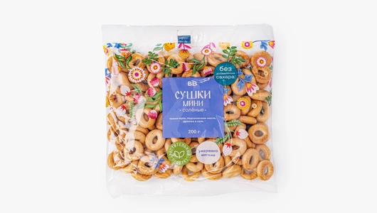 Классически хрустящие сушки-малышки с мягким солоноватым вкусом. Классическое дополнение к чаю на каждый день и просто снек на закуску.