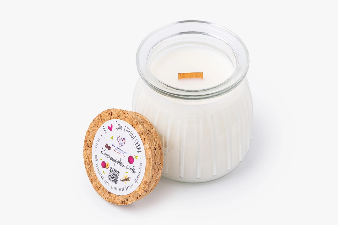Небольшая свеча в стеклянной банке с пробковой крышкой наполняет пространство тёплым, мягким ароматом сладкой спелой сливы и вишни с лёгкими цитрусовыми акцентами и нотами фрезии. Кокосовый воск плавится ровно, а древесный фитиль даёт спокойное, живое пламя, создавая уютную атмосферу для вечера дома. Компактный формат делает свечу подходящей для спальни, гостиной или в качестве небольшого подарка с настроением заботы и тепла. Свеча произведена мастерами благотворительного фонда «Дом слепоглухих», где творят люди с инвалидностью. Приобретая этот товар, вы вносите важный вклад в проект «Добрая полка». Он создан, чтобы оказать благотворительным фондам поддержку в продаже собственной уникальной продукции.