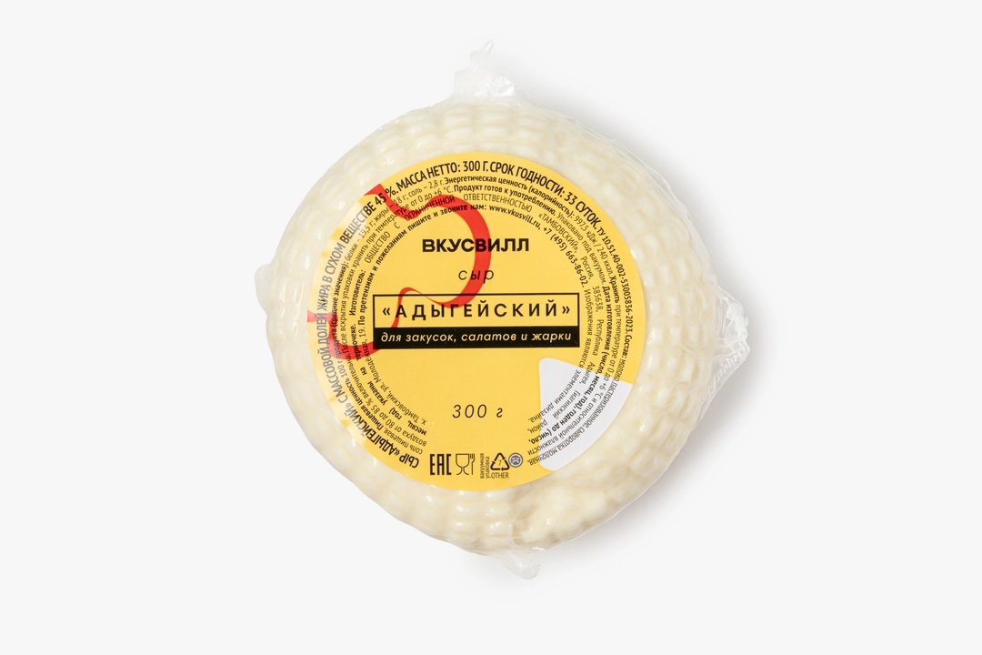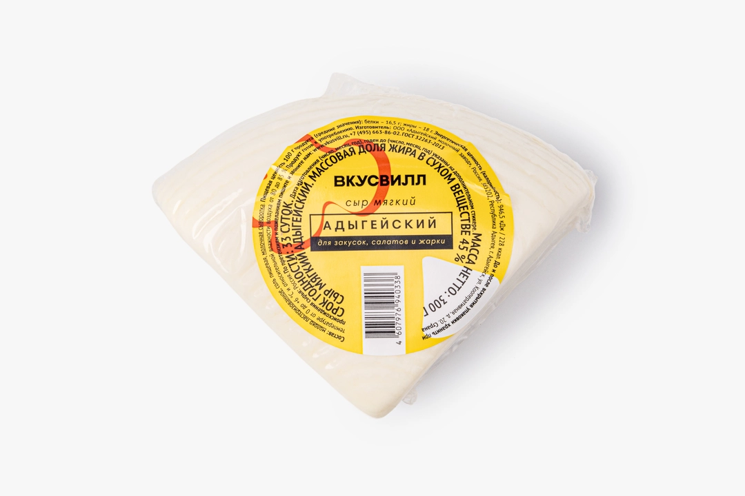 Классический адыгейский сыр с плотной текстурой и солоноватым сливочно-творожным вкусом. Подходит для приготовления несладкой выпечки, салатов, закусок или самостоятельного лёгкого перекуса. Массовая доля жира в сухом веществе 45%.