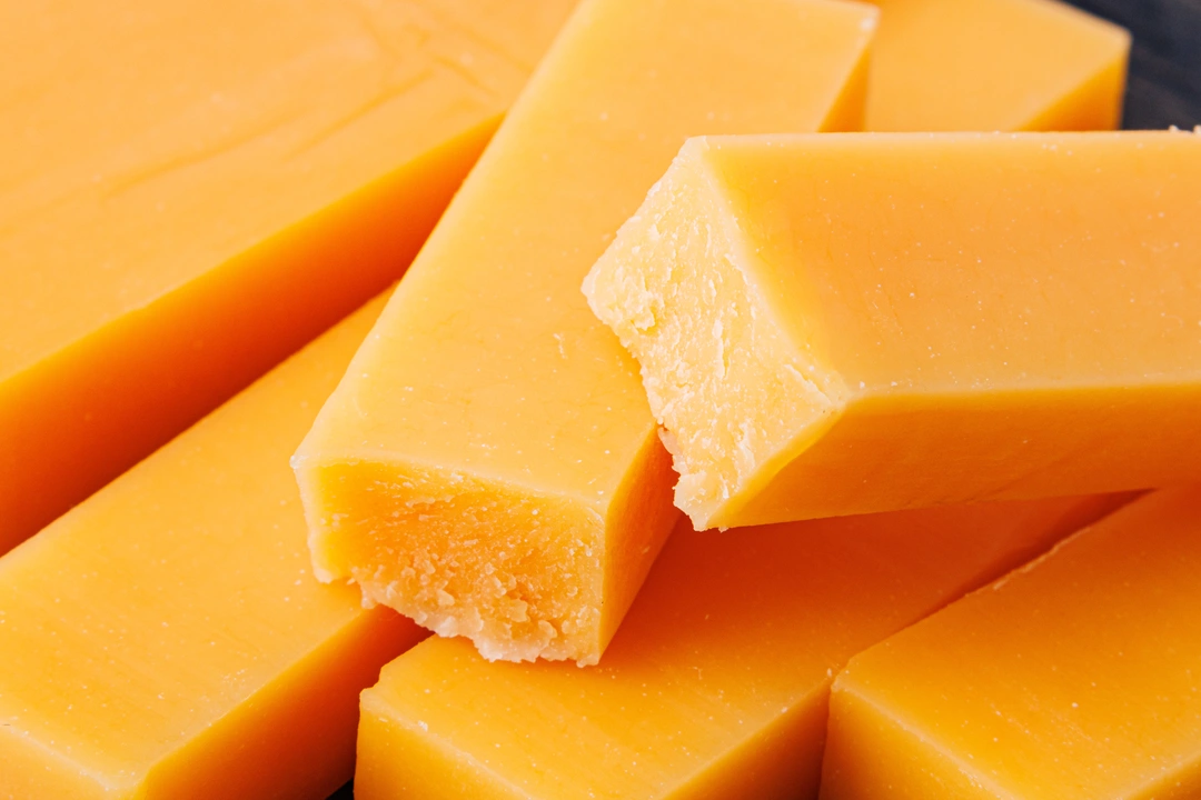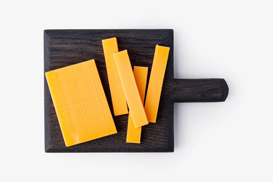 Выдержанный чеддар с плотной, чуть рассыпчатой структурой и насыщенным сливочно-пряным вкусом. При созревании развивается лёгкая ореховая нота и характерная пикантность. Хорошо плавится, подходит для горячих бутербродов, пасты, запеканок и подачи в сырной тарелке.