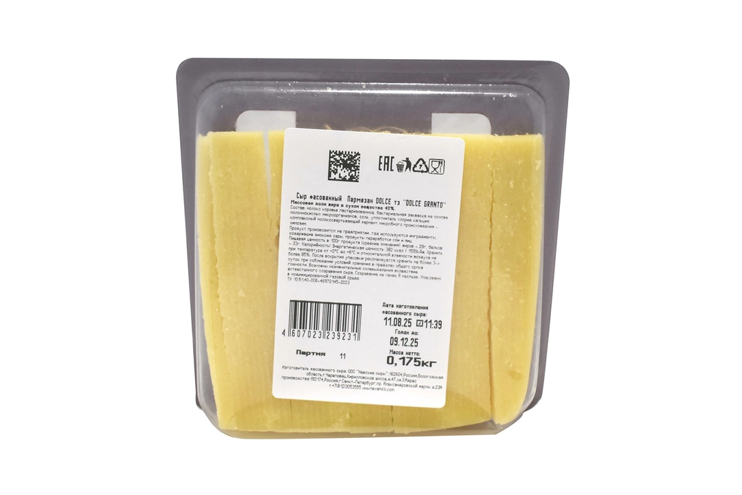 Сыр Dolce Granto Пармезан 40% твердый в нарезке 175 г / Супермаркет