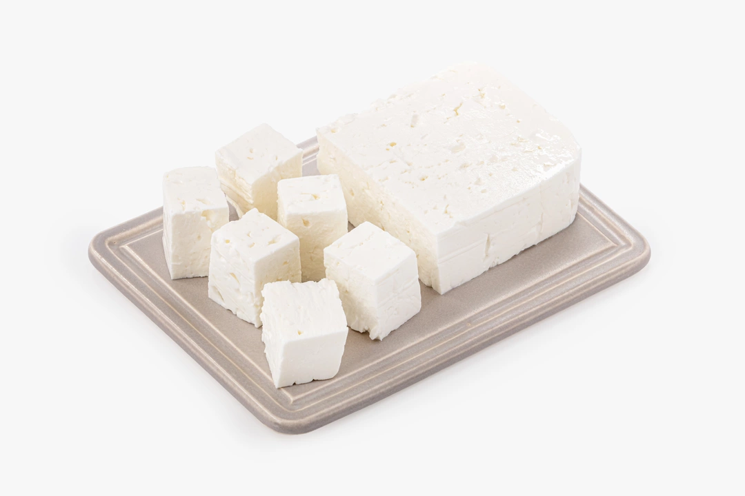 Белый рассольный сыр с плотной текстурой и характерным сливочно-солёным оттенком. Он изготовлен сыроделом из Греции по традиционной греческой технологии фета и сохраняет лёгкую зернистость и упругость. Вкус получается ярким, но не резким благодаря сочетанию цельного коровьего молока, закваски и щадящей выдержки в рассоле. Сыр можно нарезать кубиками и добавить в овощные салаты, подчеркнув свежесть томатов, огурцов и зелени, или использовать для приготовления праздничных закусок. Массовая доля жира в сухом веществе — 40%.