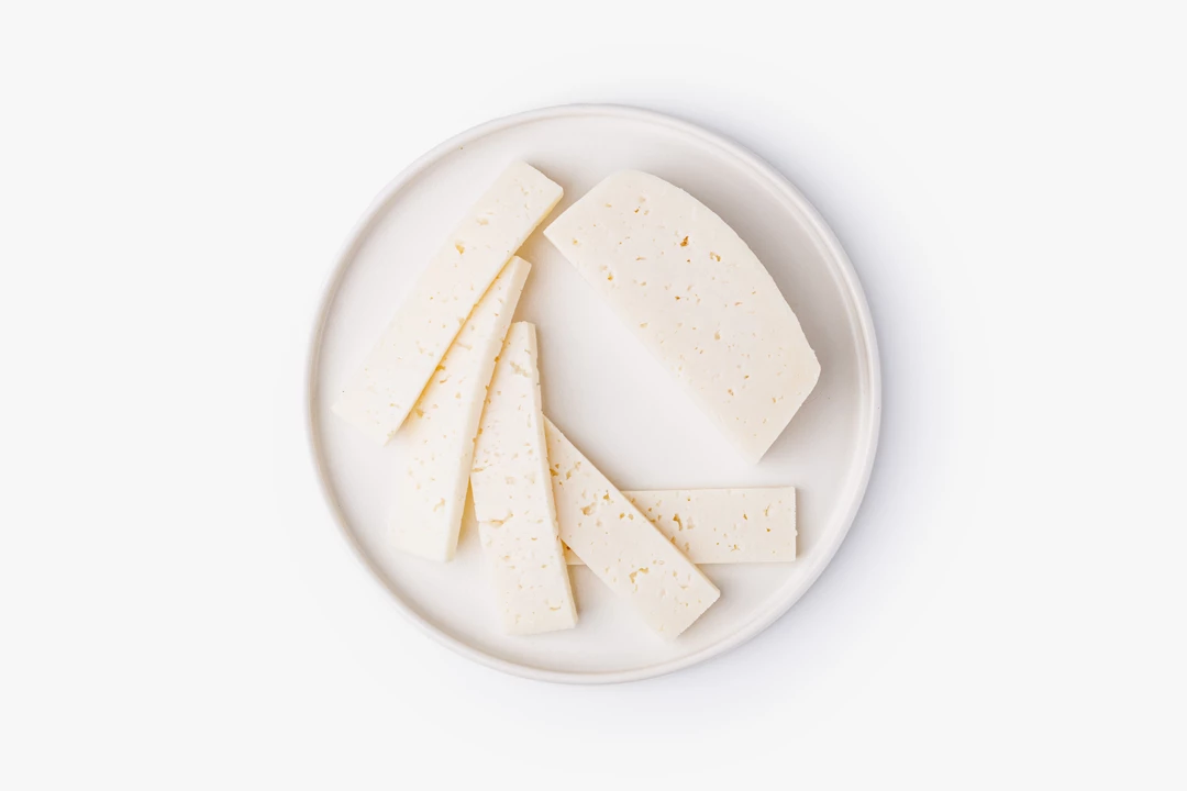 Молодой козий сыр с мягким вкусом и плотной, но нежной текстурой. Слегка солоноватый, с характерными молочными и лёгкими сливочными оттенками. Хорошо держит форму при нарезке, поэтому подойдёт для салатов, холодных закусок и запеканок. В сочетании с мёдом или инжиром раскрывает более выраженные сливочные ноты.