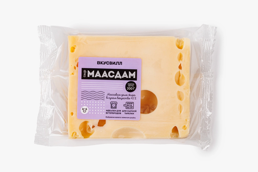 «Маасдам» отличается сладковатым, терпким, в меру островатым вкусом. Узнаваемым признаком этого сорта являются характерные круглые дырочки. Идеально подходит как для бутербродов, так и для сырной тарелки. Массовая доля жира в сухом веществе 45%.