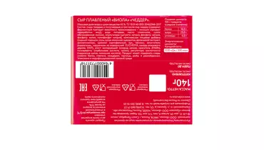 Сыр плавленый «Виола» «Сливочный». Массовая доля жира в сухом веществе 45%. Плавленый сыр Viola является визитной карточкой компании Viola. Его производство началось в еще в 1934 году. Тогда плавленый сыр Viola считался почти деликатесом и украшением праздничного стола, затем – любимым дополнением к бутербродам. Однако неизменным остается превосходный сливочный вкус этого сыра, который за своё неизменно высокое качество вот уже шесть раз становился обладателем почетной премии Товар года. Рецептура плавленого сыра, разработанная финскими и российскими технологами Viola, является поистине уникальной. Все ингредиенты в составе этого сыра являются натуральными и соответствуют российским, европейским и корпоративным стандартам качества Viola. Для производства плавленого сыра Viola используются твердые и полутвердые сорта сыров (эдам, тильзит, маасдам), сливочное масло и сухое молоко, именно поэтому он получается таким вкусным. Все наполнители – такие как грибы-лисички, ветчина и другие – также являются исключительно натуральными. Любители Viola могут выбрать сыр в удобной упаковке и формате – в «ванночках», с «треугольниках» или ломтиках. Например, каждый кусочек сыра в ломтиках имеет индивидуальную порционную упаковку. Благодаря такому формату, этот плавленый сыр порадует вас при приготовлении домашних бутербродов, сэндвичей и даже горячих блюд, а также будет кстати в время перекуса на работе, пикнике или в путешествии. Ассортимент плавленого сыра Valio в ломтиках с лисичками, с ветчиной, Четыре сыра, Чеддер и «Сливочный» представлен в удобной упаковке весом 140 г. Страна производитель-Россия