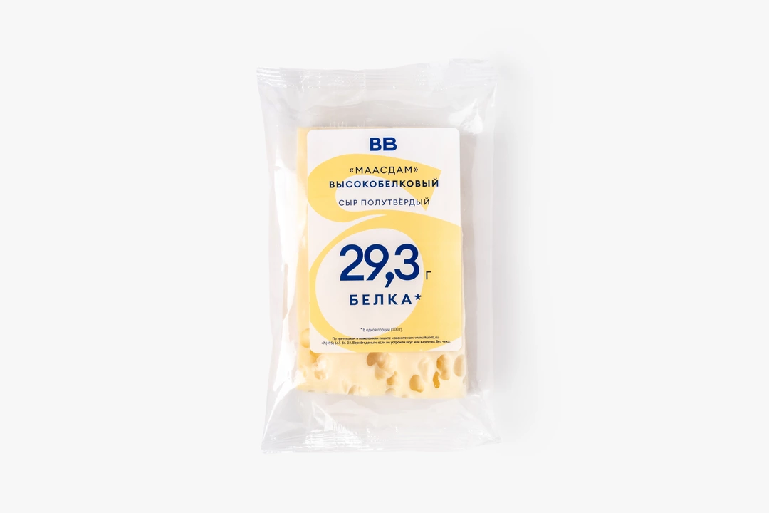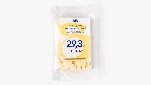 Этот полутвёрдый сыр как нельзя лучше подойдёт для рациона спортсменов, ведь он содержит действительно много белка: почти 30 г на 100 г продукта. В остальном он такой же, как классический «Маасдам»: нежный, с характерными крупными «глазками» и выразительным молочно-сладковатым вкусом. Его можно добавлять в макароны, салаты, яичные завтраки и блюда, требующие запекания. А также использовать для бутербродов, сытных роллов в лаваше и других закусок. Массовая доля жира в сухом веществе 45%.