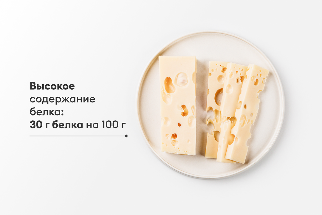 Отличается высоким содержанием белка: в 100 г сыра 30 г белка