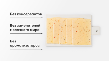 Пикантный сыр в удобном формате нарезки. Состав проверен: нет консервантов, ароматизаторов и заменителей молочного жира
