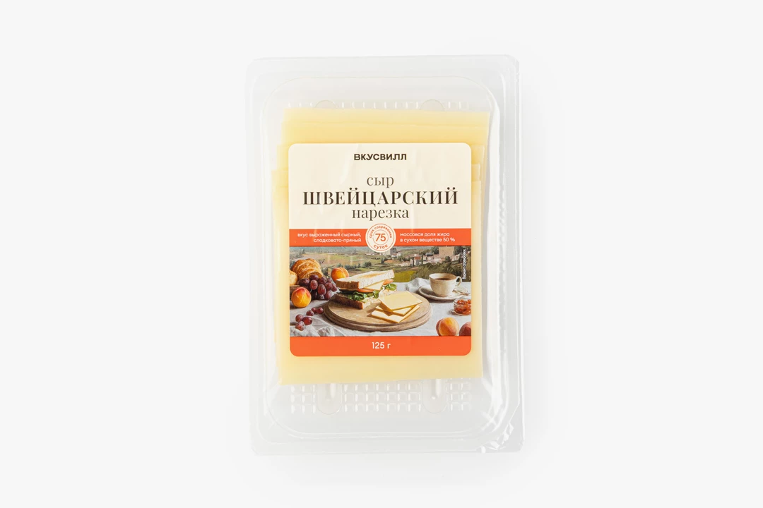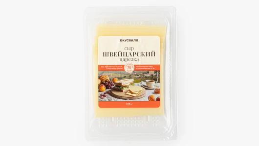 Этот сыр отличается мягким сливочным вкусом с лёгкой сладостью, характерной для швейцарских сортов. Тонкие ломтики плотные и эластичные, хорошо держат форму и удобно укладываются на хлеб или тосты. Во вкусе ощущается лёгкая ореховая нотка, которая делает сыр универсальным: он подходит и для сэндвичей, и для горячих блюд — плавится равномерно и даёт приятную тянущуюся текстуру. Такой вариант подойдёт для завтраков, закусок или простой сырной тарелки.