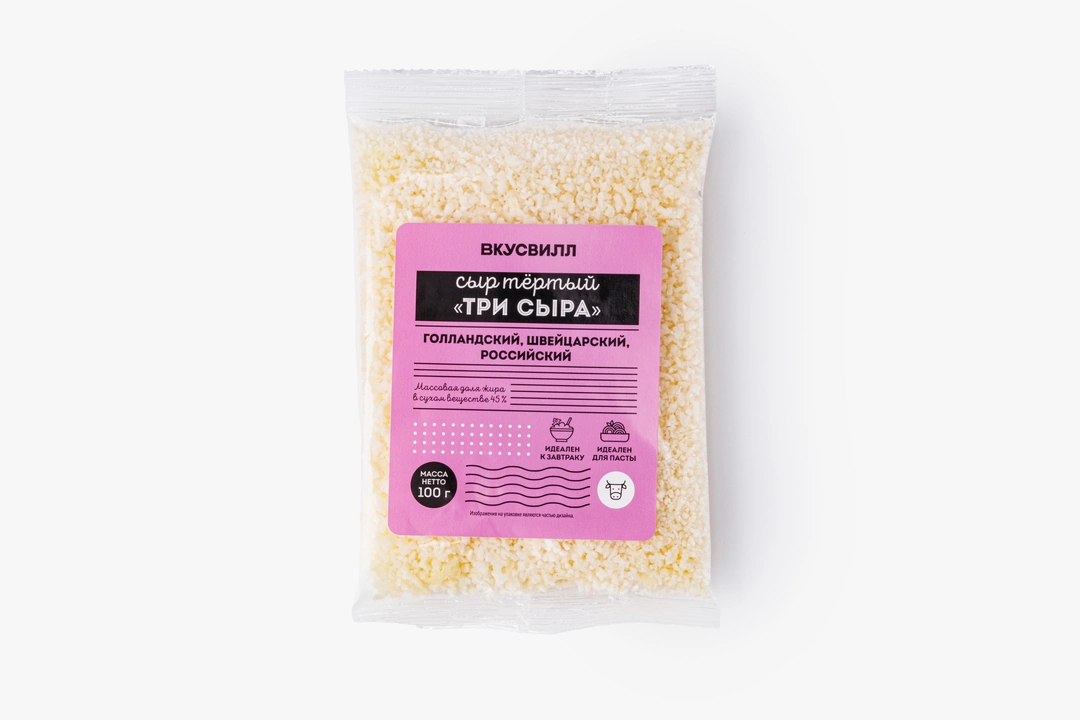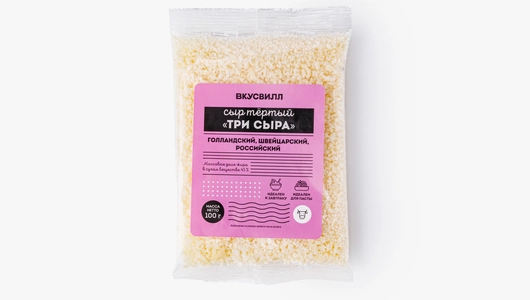 Микс трёх классических сортов сыра: швейцарского, голландского и российского. Он прекрасно плавится и подойдёт для воплощения любой кулинарной фантазии, будь то пицца, паста, лазанья, салат или блюдо к завтраку. Массовая доля жира в сухом веществе 45%