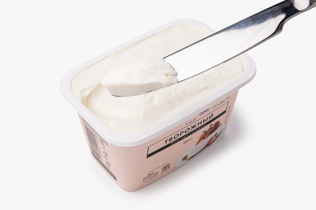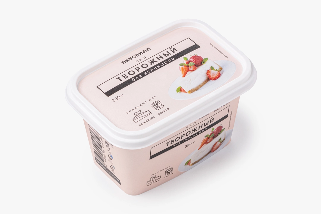 Творожный сыр с плотной и пластичной текстурой подходит для приготовления блюд, где важна ровная, однородная консистенция. На его основе получаются нежные чизкейки, а также сырные начинки для роллов или десертов. Благодаря высокому содержанию сливок он хорошо держит форму при запекании и не расслаивается. Вкус нейтральный, слегка солоноватый, без лишних оттенков. Массовая доля жира в сухом веществе 70%