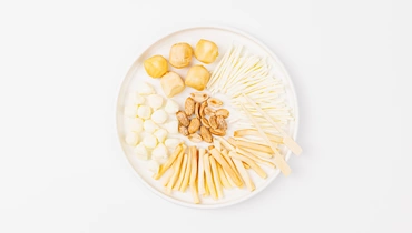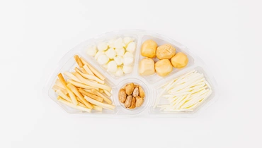 Оригинальная композиция из сыров с хрустящими орешками. Волокнистый чечил напоминает по текстуре тонкие сырные нити. Миниатюрные шарики перлини добавляют сливочный акцент. Копчёные варианты чечила и боккончини раскрываются постепенно: сначала чувствуется деликатная солоноватость, затем проявляются дымные оттенки. Арахис создаёт приятный контраст: ореховые ноты оттеняют молочную основу блюда. Набор удобно брать с собой, сыры уже нарезаны и готовы к употреблению. Подойдёт для лёгкого перекуса или дополнения к фруктовой тарелке.