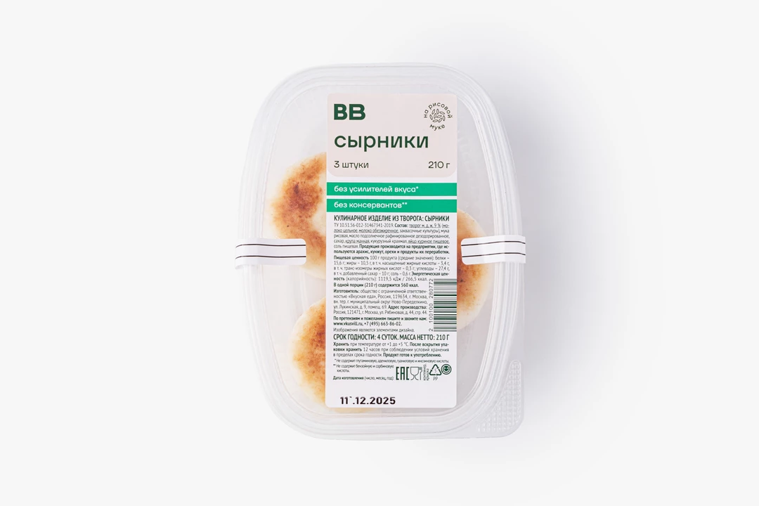 Пышные сырники из 9% творога, запечённые в духовке. Имеют нежную консистенцию и характерный сладковато-сливочный вкус. Идеально подходят для завтрака или перекуса. Рекомендуем сочетать со сметаной, сгущённым молоком или джемами. Друзья, мы получаем от вас сотни откликов о наших товарах. И если видим просьбы об их улучшении — дорабатываем рецептуру. Эти сырники тоже прошли доработку: их текстура стала лучше, а количество соли и сахара — более сбалансированным.
