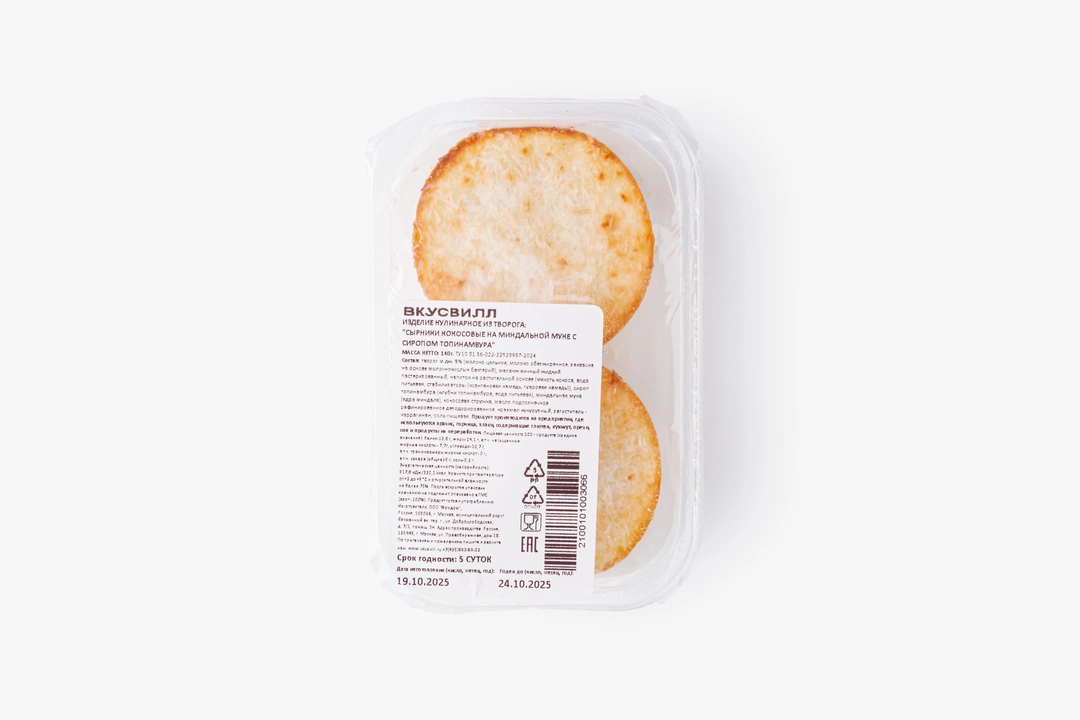 Мягкие, ароматные сырники приготовлены на твороге и миндальной муке — благодаря этому они получаются особенно нежными, с лёгким ореховым акцентом. Вкус кокоса ощущается деликатно: он не выходит на передний план, а только добавляет творожной основе немного тропического настроения. Сироп топинамбура придаёт лёгкую карамельную сладость без рафинированного сахара и подчёркивает сливочность, оставляя приятное послевкусие. Такие сырники подойдут и для завтрака, и в качестве уютного десерта. Их можно подать с ягодами, ложкой йогурта или съесть просто так, когда хочется попробовать давно знакомое блюдо в интересном прочтении.