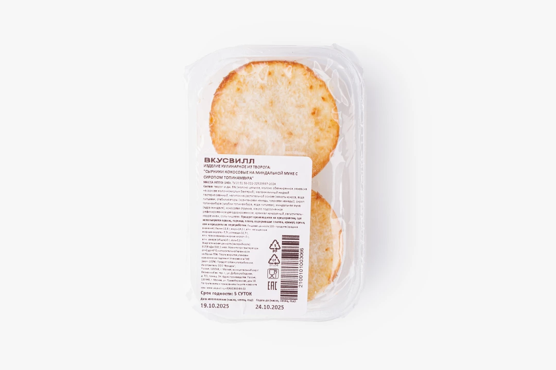 Сырники кокосовые на миндальной муке с сиропом топинамбура купить с бесплатной доставкой на дом всего за 2 часа из ВкусВилла. Также можно оформить онлайн-заявку на самовывоз и забрать собранный заказ через 30 минут. Цены, отзывы о товарах от наших покупателей, действующие акции на официальном сайте ВкусВилл.