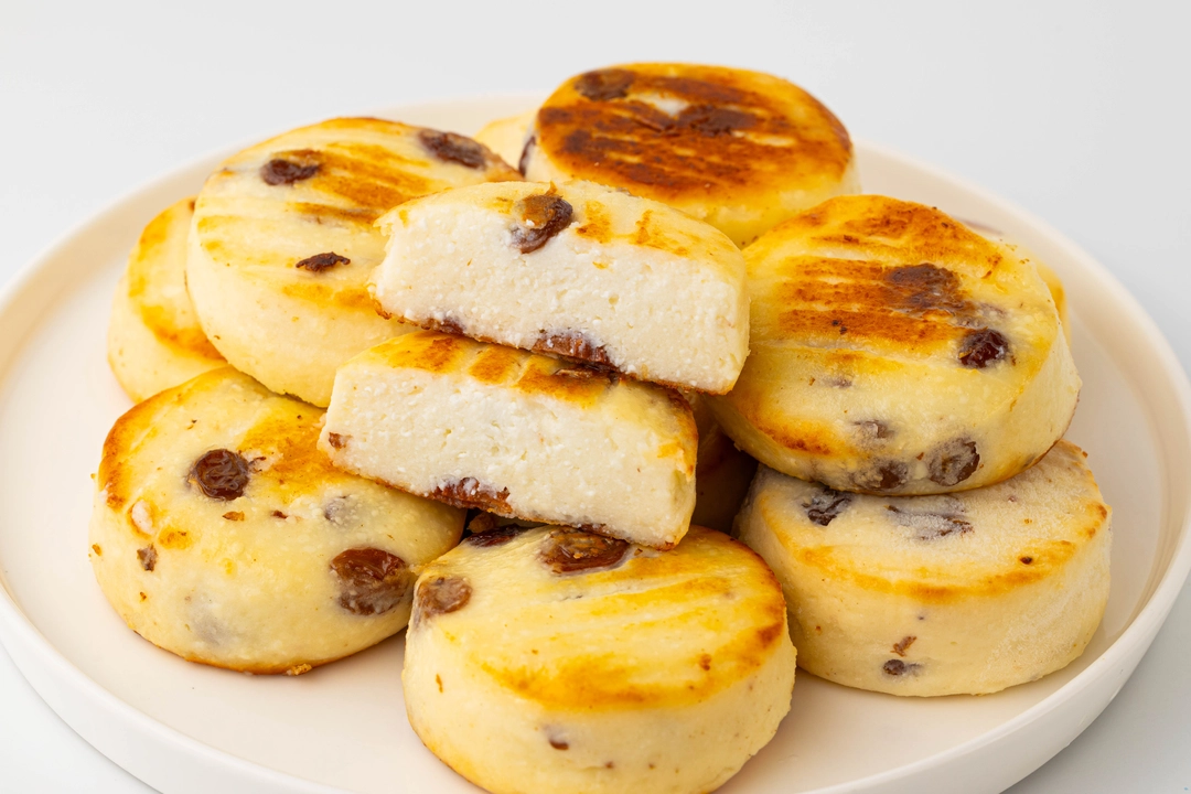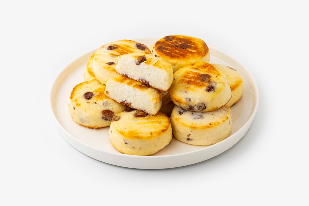 Нежные сырники с изюмом — это универсальный вариант для завтрака, полдника или десерта после основного блюда. Фруктовые ноты кишмиша и тёплый оттенок ванили придают им сладковатый вкус без излишней приторности. Рисовая мука делает тесто особенно воздушным и мягким. Мы уже запекли сырники, их нужно только подогреть. Подавайте их со сметаной, вареньем, фруктовым соусом, ложкой йогурта или свежими ягодами.